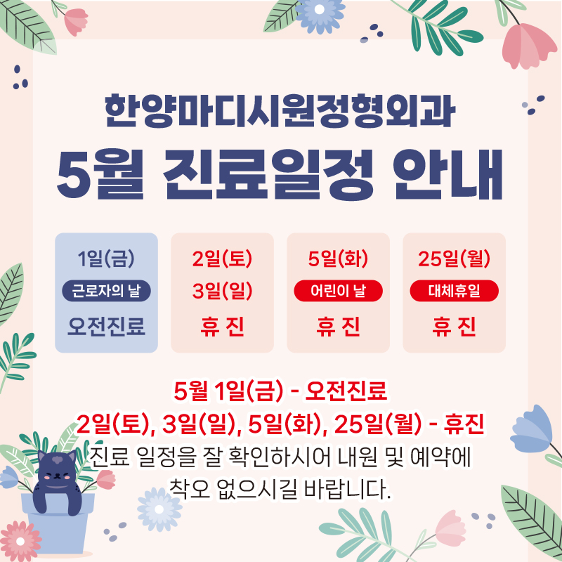 | 물리치료 받으실 분들은 마감 30분 전까지 내원해 주시기 바랍니다. | ||